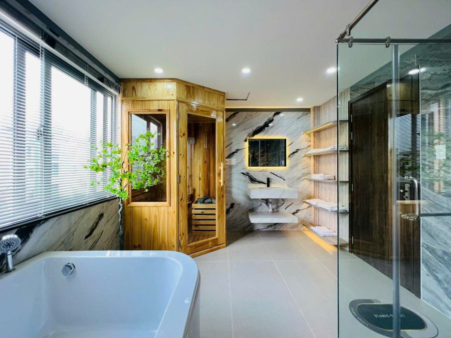 - Gồm: 3PN - 1 PHÒNG XÔNG HƠI ******* - PHÒNG KHÁCH - PHÒNG BẾP - GARA Ô TÔ - 4WC - SÂN THƯỢNG TRƯỚC VÀ SAU