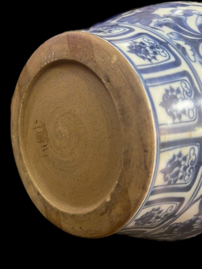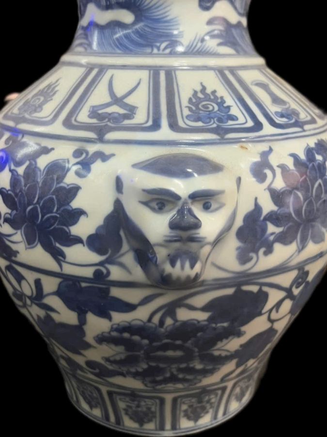 Chiếc bình dáng chóe,hai tai diện người siêu độc lạ.Cao 30cm*đkm 13cm*vb 79cm.(Tư duy thời Nguyên Vãn Kỳ Thanh Hoa元代晚期(1341——1368)