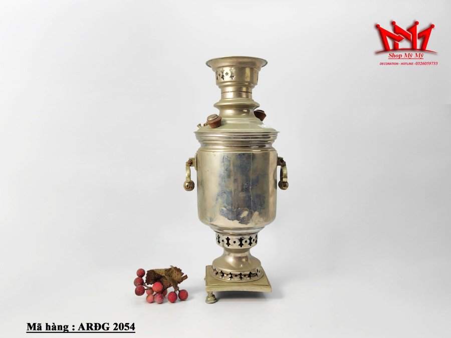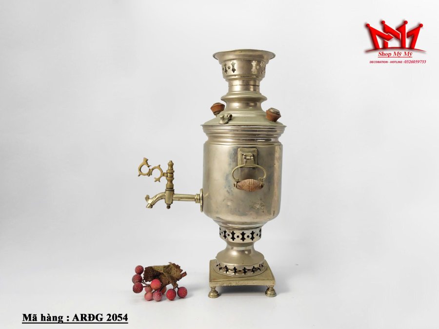 Chiếc bình đun nước kiểu Nga bằng kim loại trang trí cổ điển