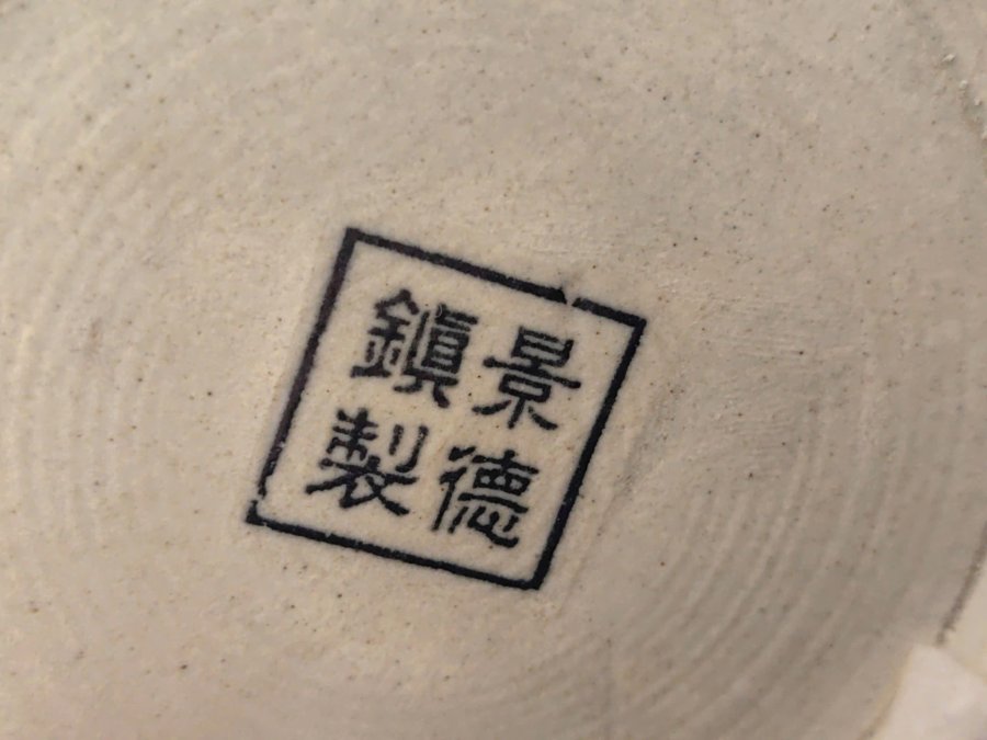 Chiếc bình gốm sứ hoạ tiết cánh hoa rơi loang màu xanh