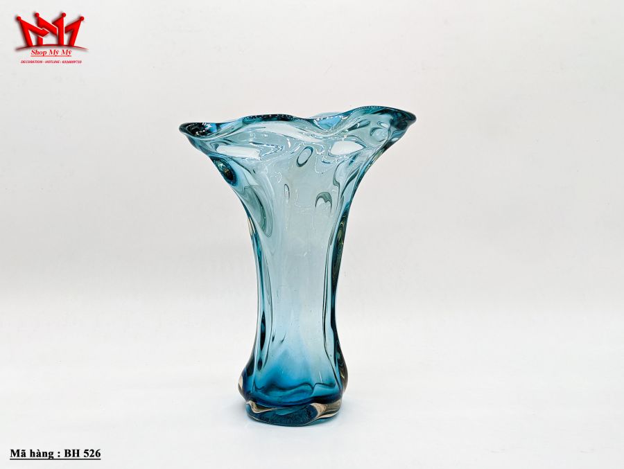 Chiếc bình hoa thủy tinh màu xanh trong, miệng xòe cổ điển chuẩn đồ xưa mang 1 vẻ đẹp hoàn mỹ và đặc biệt rất hiếm có.