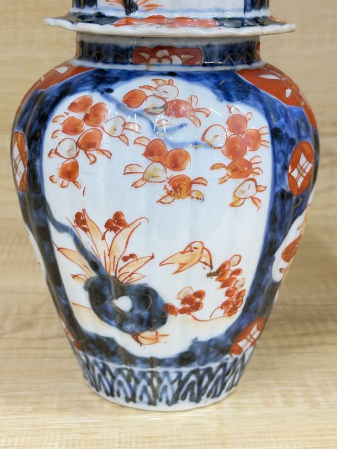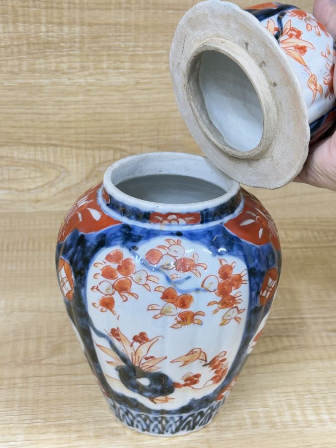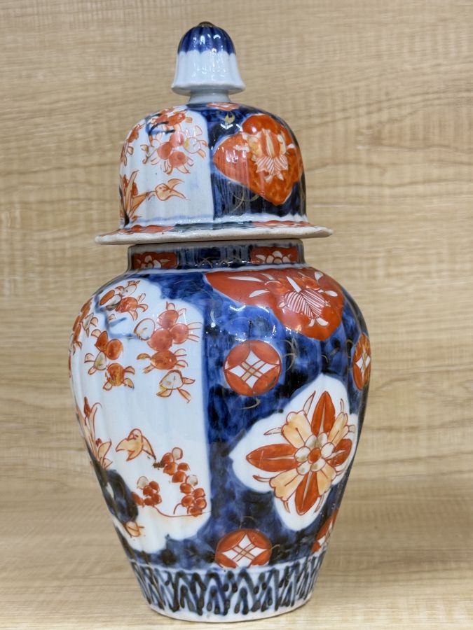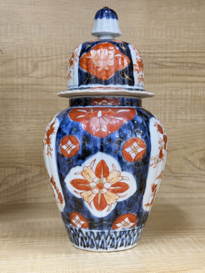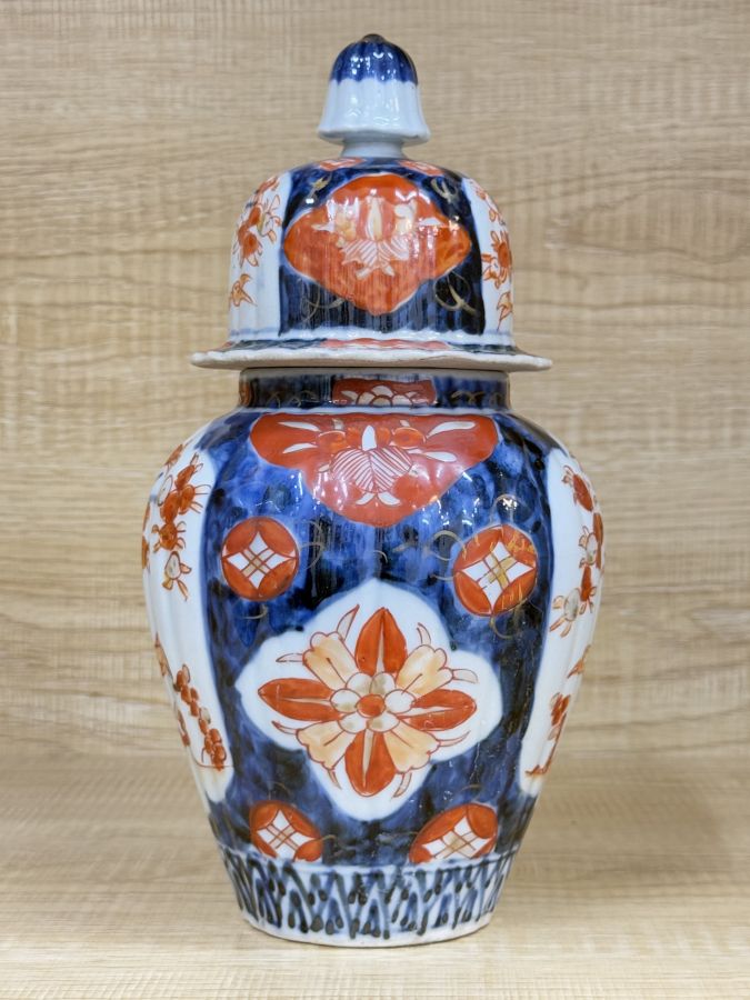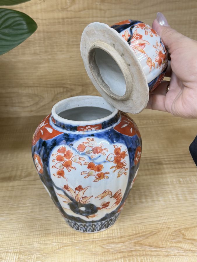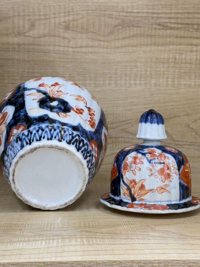 Chiếc bình sứ IMARI Nhật thế kỷ 19 - họa tiết hoa vẽ vàng - Kích thước : C25- N12 cm