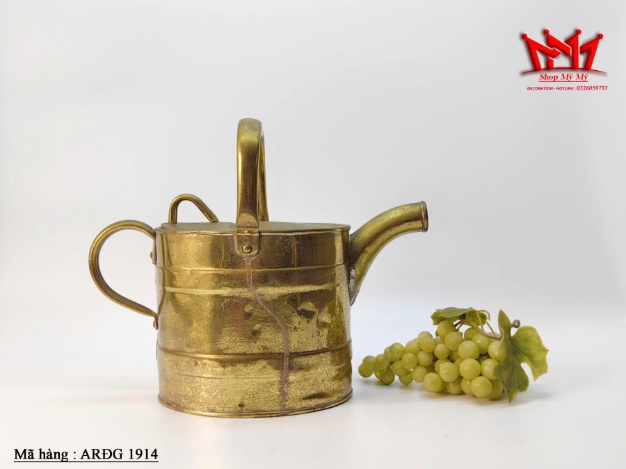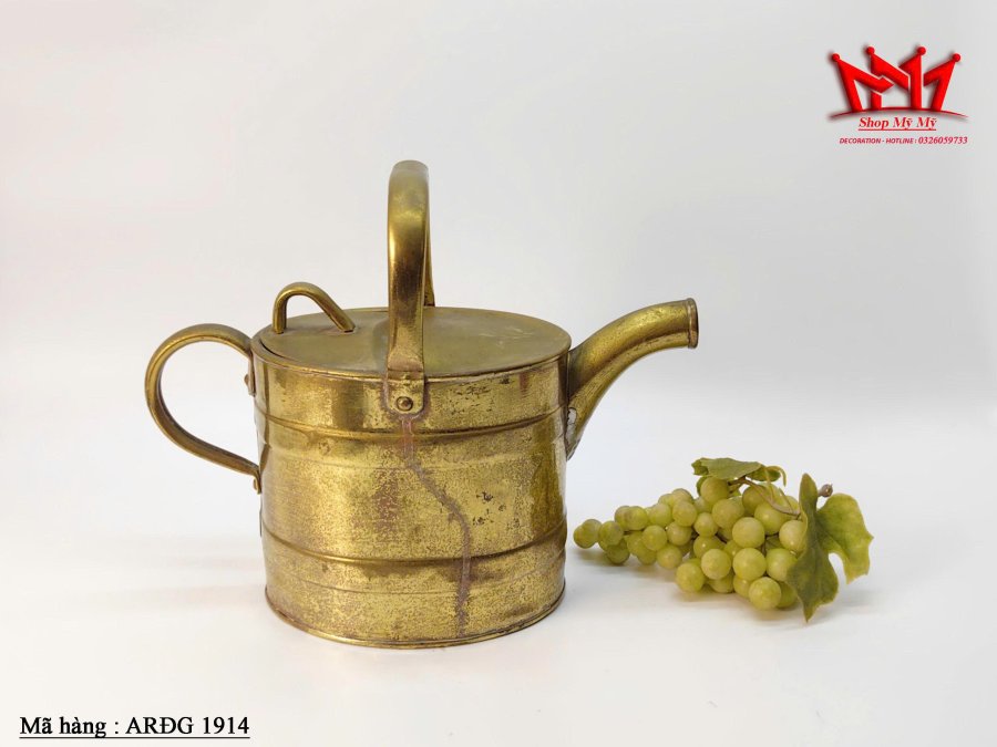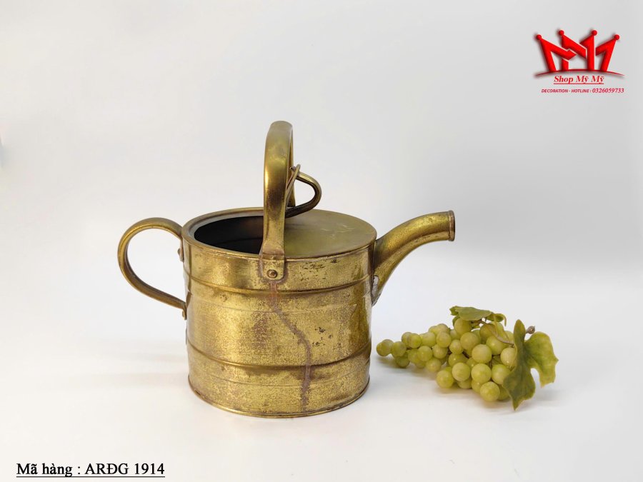 Chiếc bình tưới cây bằng đồng thau cổ, thường có nguồn gốc từ Anh Quốc vào cuối thế kỷ 19 hoặc đầu thế kỷ 20 (thời kỳ Victoria hoặc Edward). Những chiếc bình này đôi khi còn được gọi là bình đựng nước nóng.