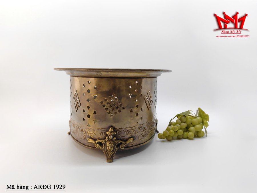 Chiếc chậu cây bằng đồng (Brass Planter) phong cách cổ điển, được xác định là mẫu Mottahedeh Indian Brass Planter.