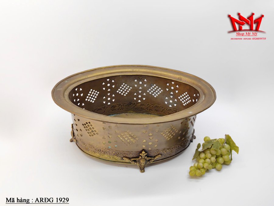 + Kiểu dáng: Hình bầu dục (oval) với phần miệng loe và thân được đục lỗ (pierced/reticulated) tinh xảo theo các họa tiết hình học.
