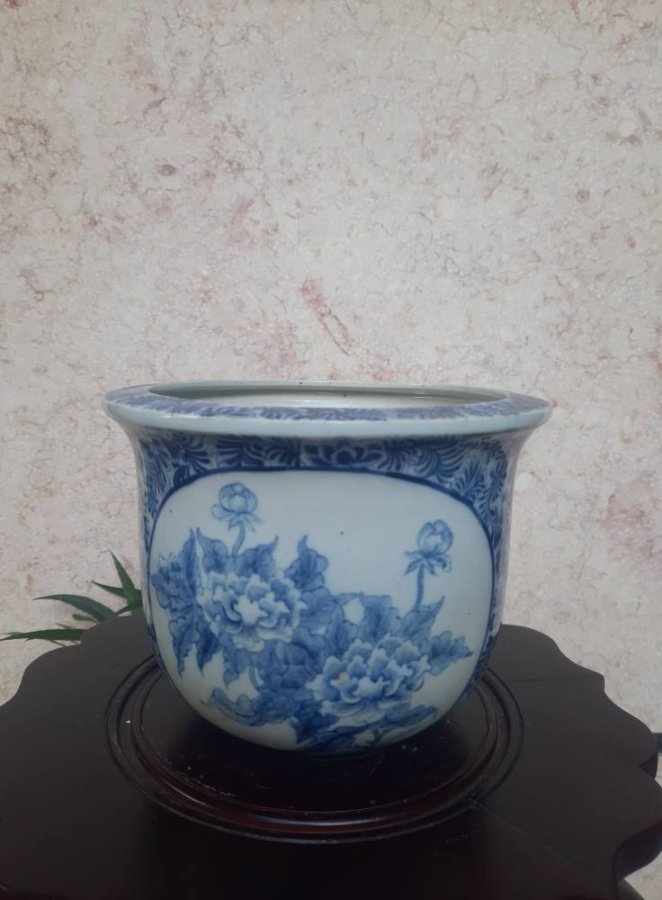 Chiếc chậu kiểng tàu cũ họa tiết vẽ Hoa