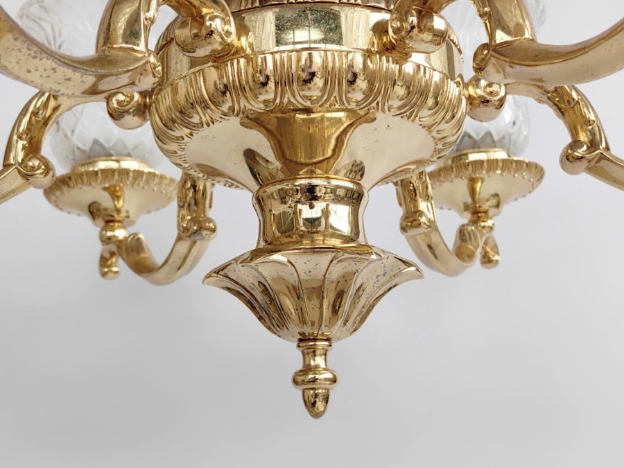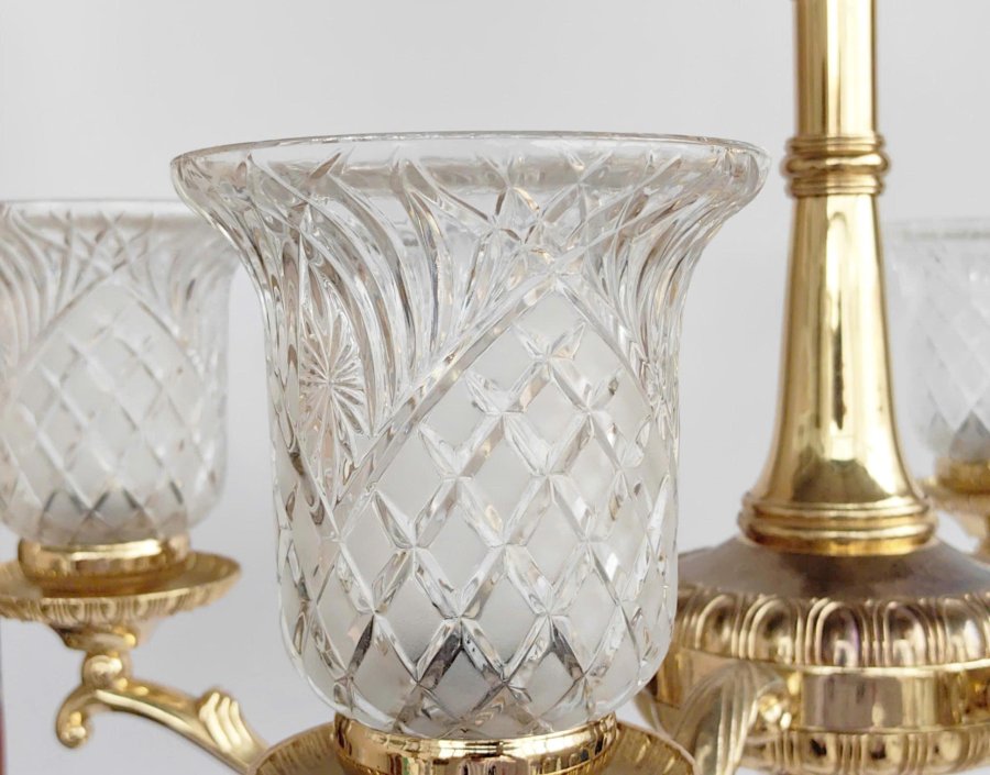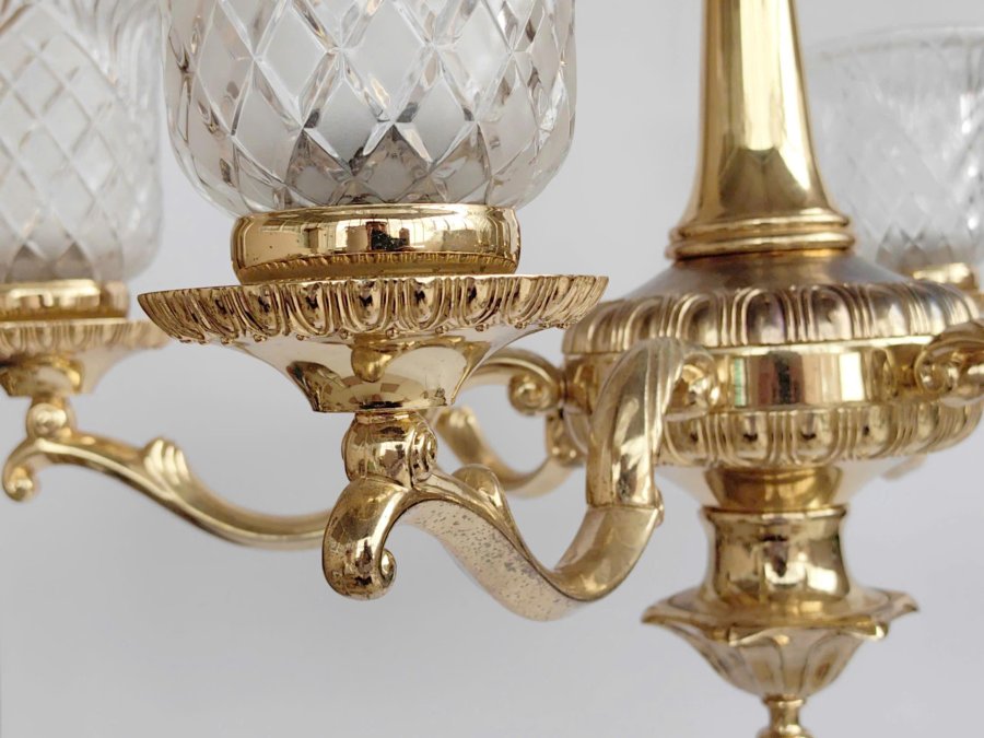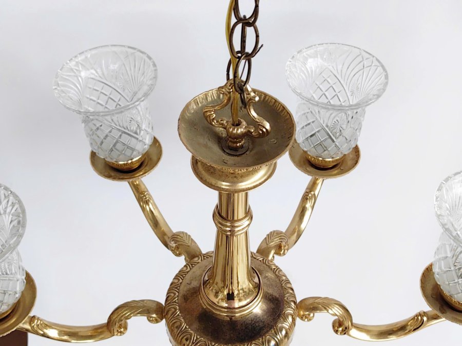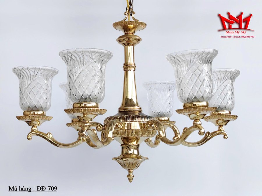 Chiếc đèn chùm treo trần bằng kim loại chụp thuỷ tinh sang trọng
