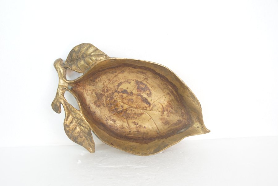 Đĩa chiếc lá bằng đồng, hàng thủ công của Japan. Có thể đựng chìa khóa, kẹp tóc, vài viên kẹo. Kích thước; 5 × 18.5 cm