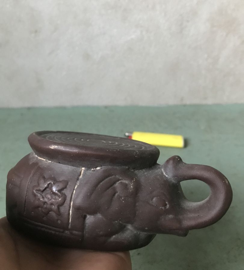 Đôn voi đất nung tử sa ,cũ .Kt mini cao 4,5cm dài 12cm