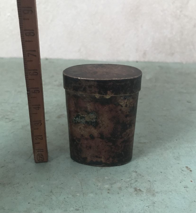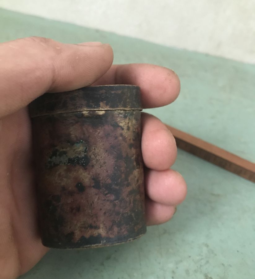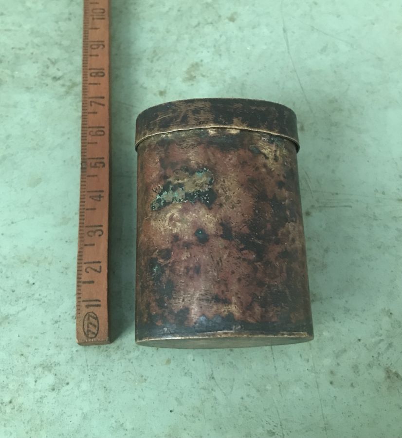 Chiếc hộp xưa thời pháp .Kt mini cao 5,5cm rộng 4,5cm ,thủ công vỏ đạn đồng