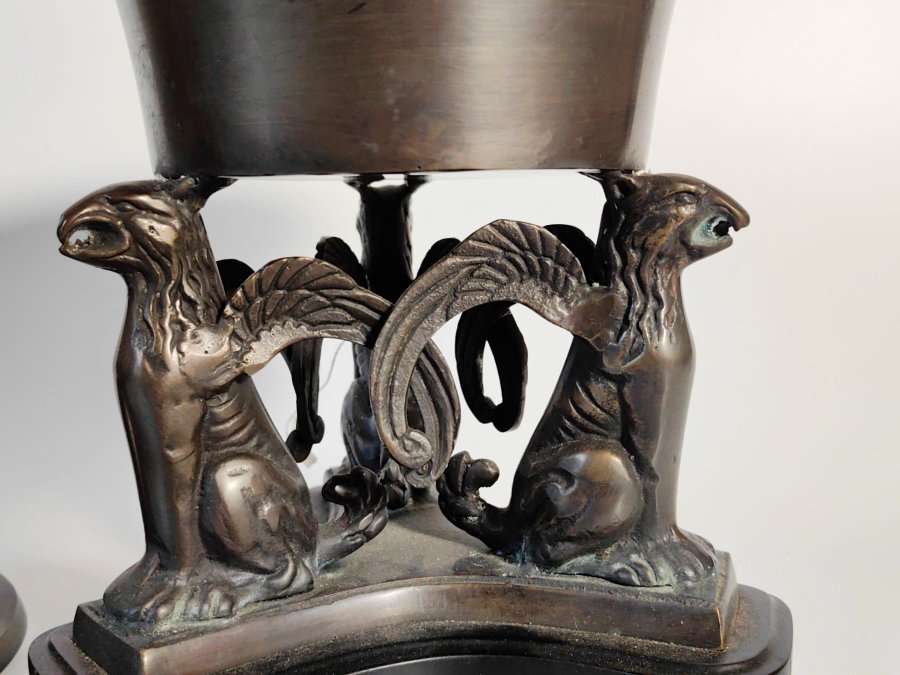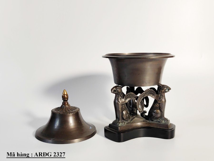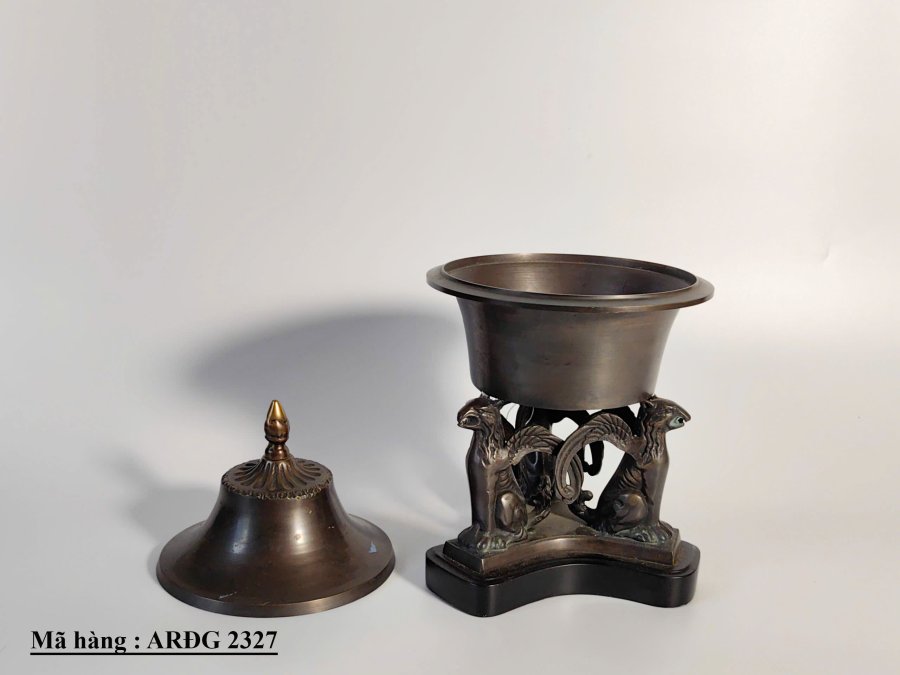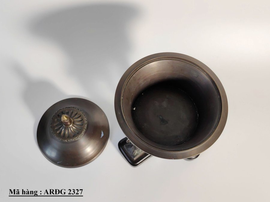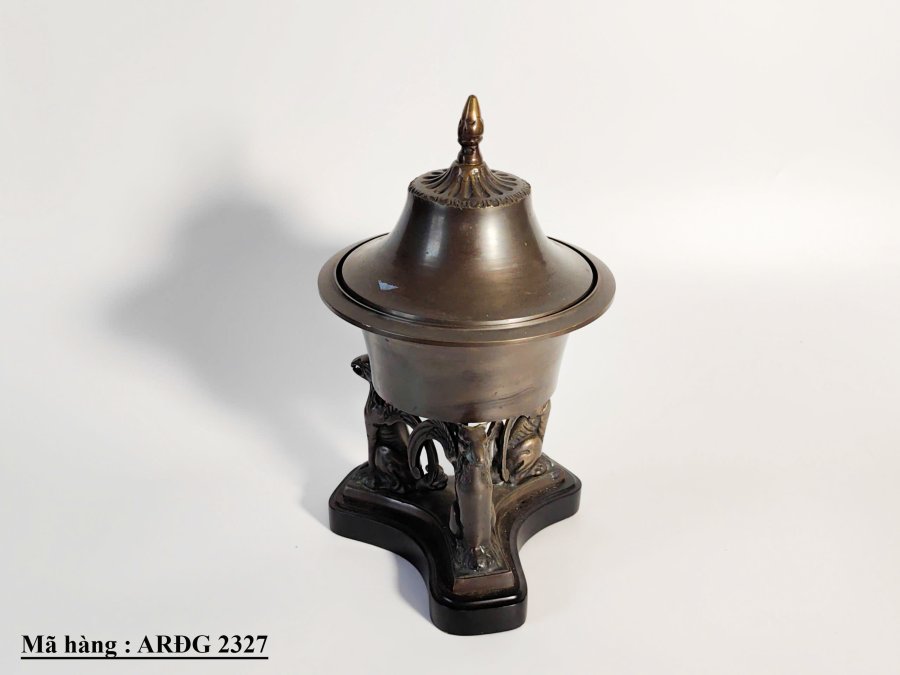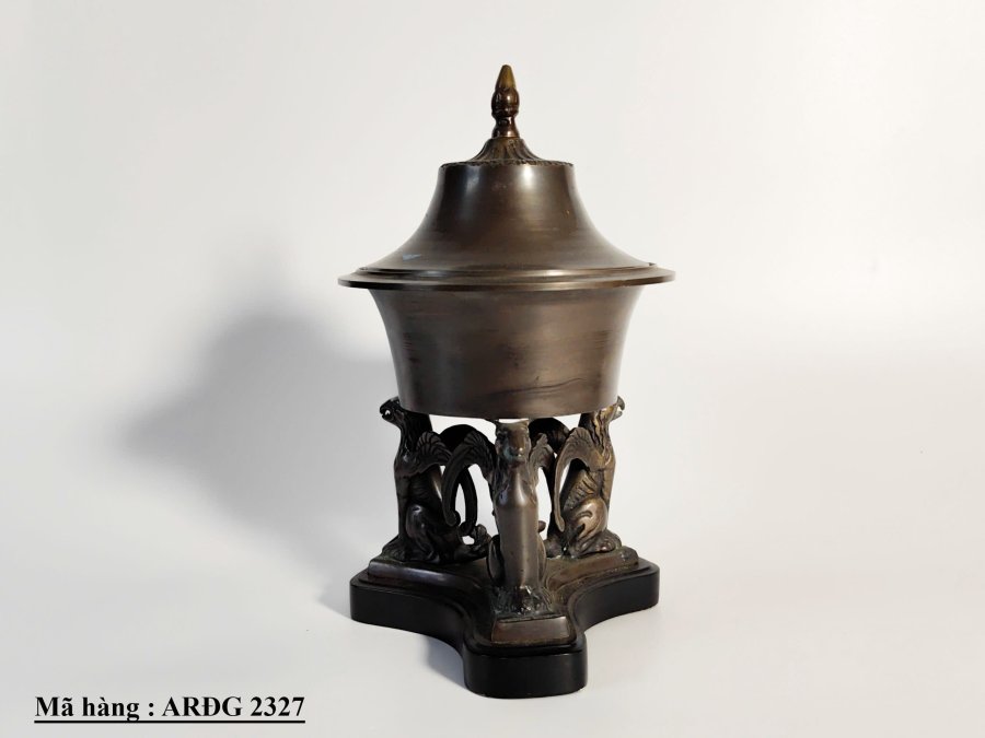 Chiếc hủ đồng với 3 chân hình sư tử có cánh đế đá.