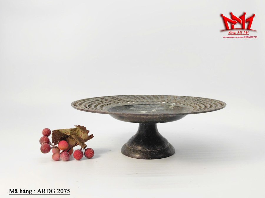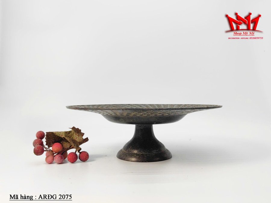 Chiếc mâm bồng bằng đồng (còn gọi là đĩa đựng hoa quả) dùng trong trang trí trưng bày bánh kẹo, hoa quả .