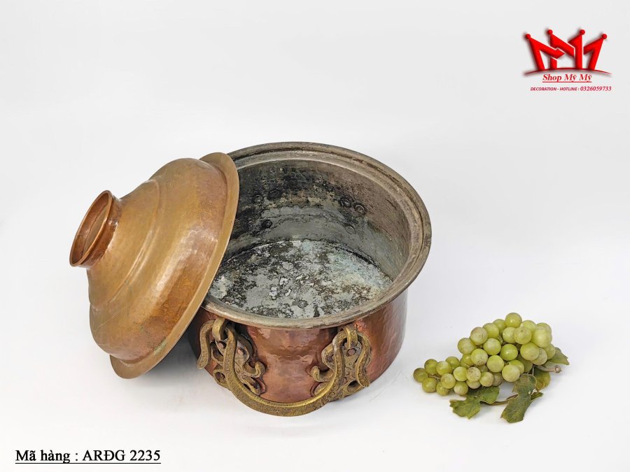 Chiếc nồi bằng đồng đỏ vó quai cầm cổ điển