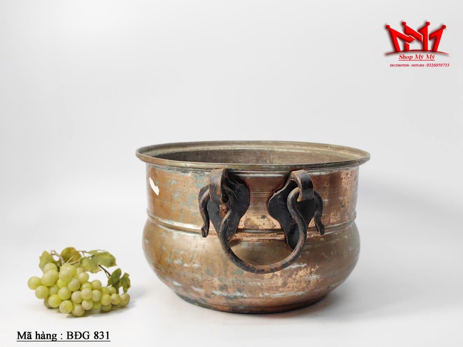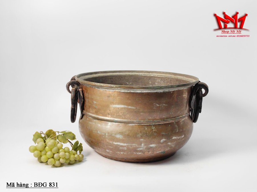 Chiếc nồi đồng cổ (hoặc vạc đồng) thường được sử dụng làm đồ trang trí (decor) hoặc vật dụng phong thủy trong nhà. Những chiếc nồi này thường được chế tác từ đồng đỏ hoặc đồng thau, mang phong cách cổ điển với các chi tiết thủ công như tay cầm bằng sắt hoặc đồng.