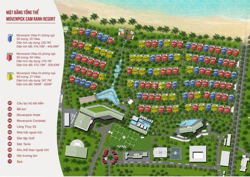 + Biệt thự 1: - Biệt thự Movenpick diện tích 481m², diện tích xây dựng 285,77m². Biệt thự loại 02 phòng ngủ, view đẹp và Căn hộ du lịch Movenpick tặng kèm có diện tích 50m² view hướng biển.
