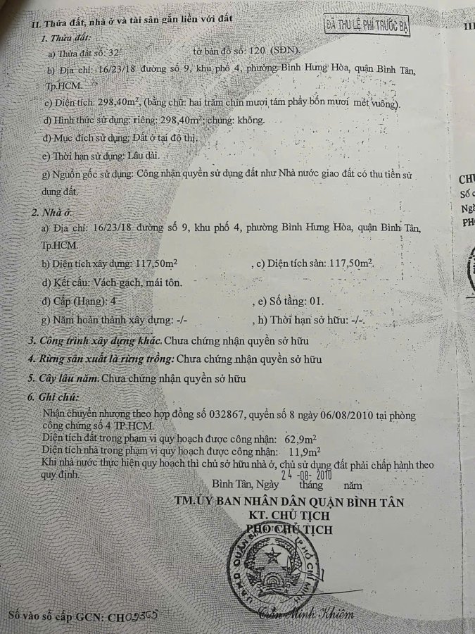 BÁN NHÀ CẤP 4 – ĐƯỜNG SỐ 9, P. BHH, BÌNH TÂN – DIỆN TÍCH KHỦNG 300m² – THÍCH HỢP LÀM NHÀ XƯỞNG, NHÀ Ở, NHÀ TRỌ