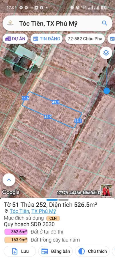 - Diện tích: 526.5m2 ( có 362.6m2 thổ cư còn lại là đất trồng cây lâu năm )