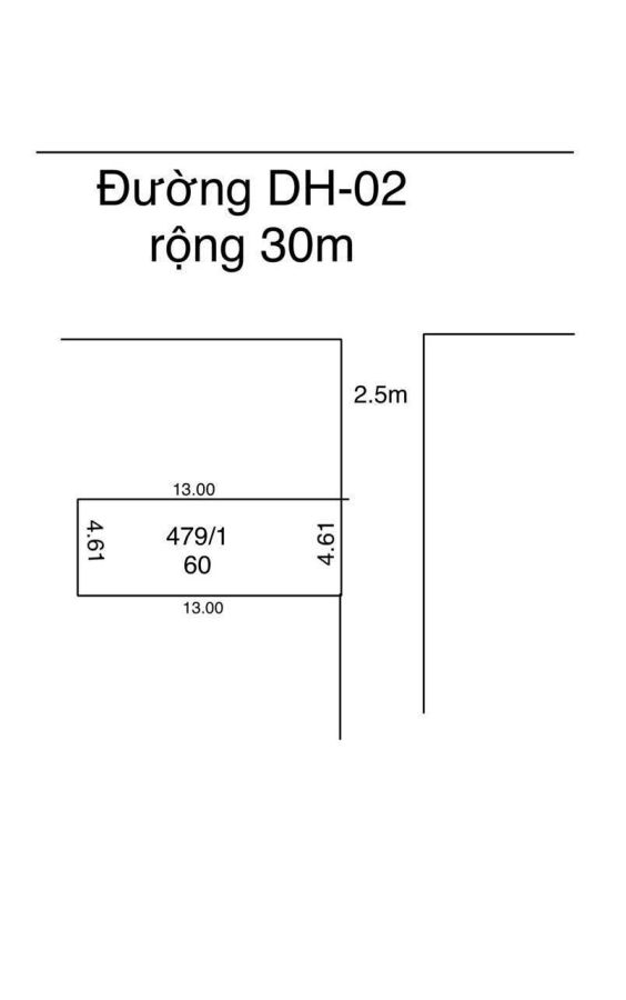 -Đất thổ cư -- Mặt tiền 4,61m. Diện tích sổ 60m, diện tích thực tế 64m.