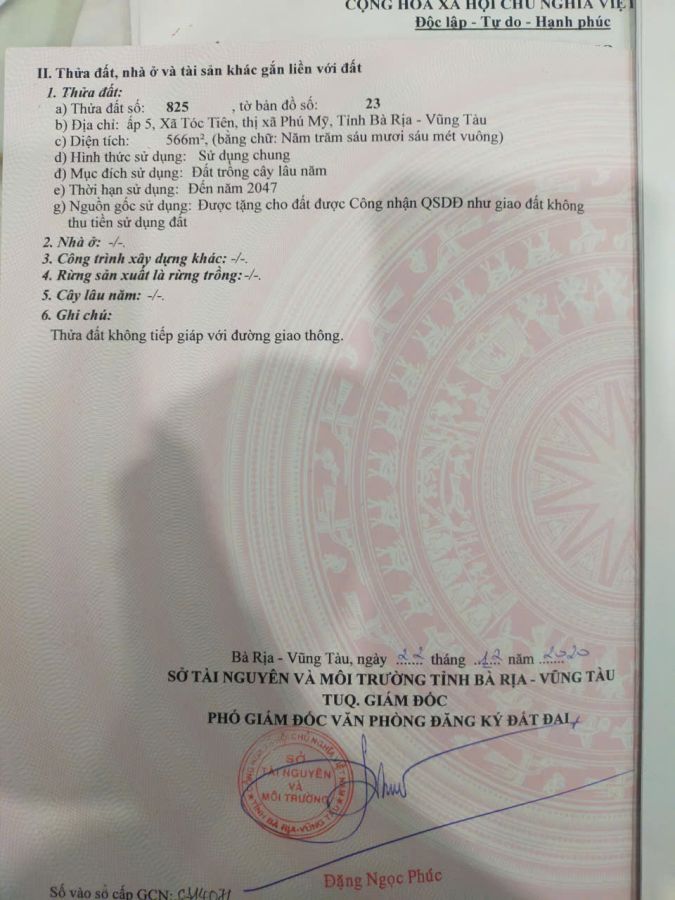 %%CHÍNH CHỦ CẦN BÁN LÔ ĐẤT DSH Ở ẤP 5 TÓC TIÊN - HẮC DỊCH - PHÚ MỸ - BÀ RỊA VŨNG TÀU.