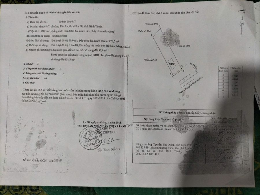 - Diện tích : 528.5 m2, mặt tiền 12m ( 50m2 thổ cư )