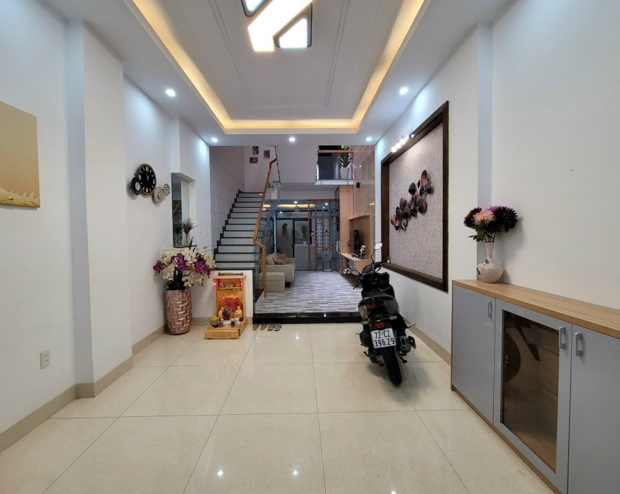 - Nhà 1 trệt 2 lầu có 4pn, pk bếp, p thờ, sân, 4wc. Ô tô vào nhà được.