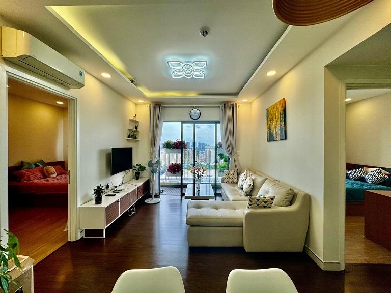 - Thiết kế căn hộ: đầy đủ nội thất (rèm, máy lạnh, bếp, internet đầy đủ); tiện ích nội và ngoại khu chuẩn 5 SAO (Vincom, Vinmart, hồ bơi, sân bóng, công viên.)