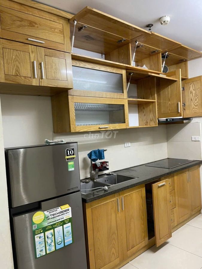 - Bếp riêng biệt, đầy đủ kệ, bếp từ, chậu rửa bát, hút mùi,...