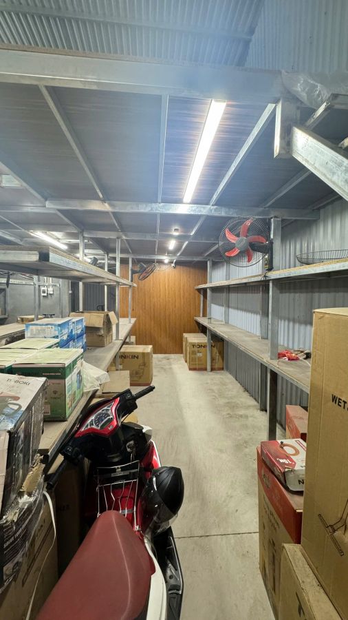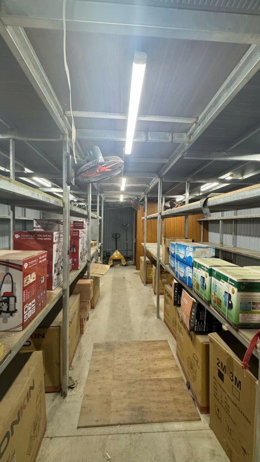 -Đầy đủ điện nước, có kệ hàng, quạt, camera, lũ không bị ngập