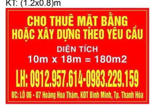 Cho thuê mặt bằng hoặc xây dựng theo yêu cầu lô 06 - 07 đường Hoàng Hoa Thám, KDT Bình Minh, Tp Thanh Hóa