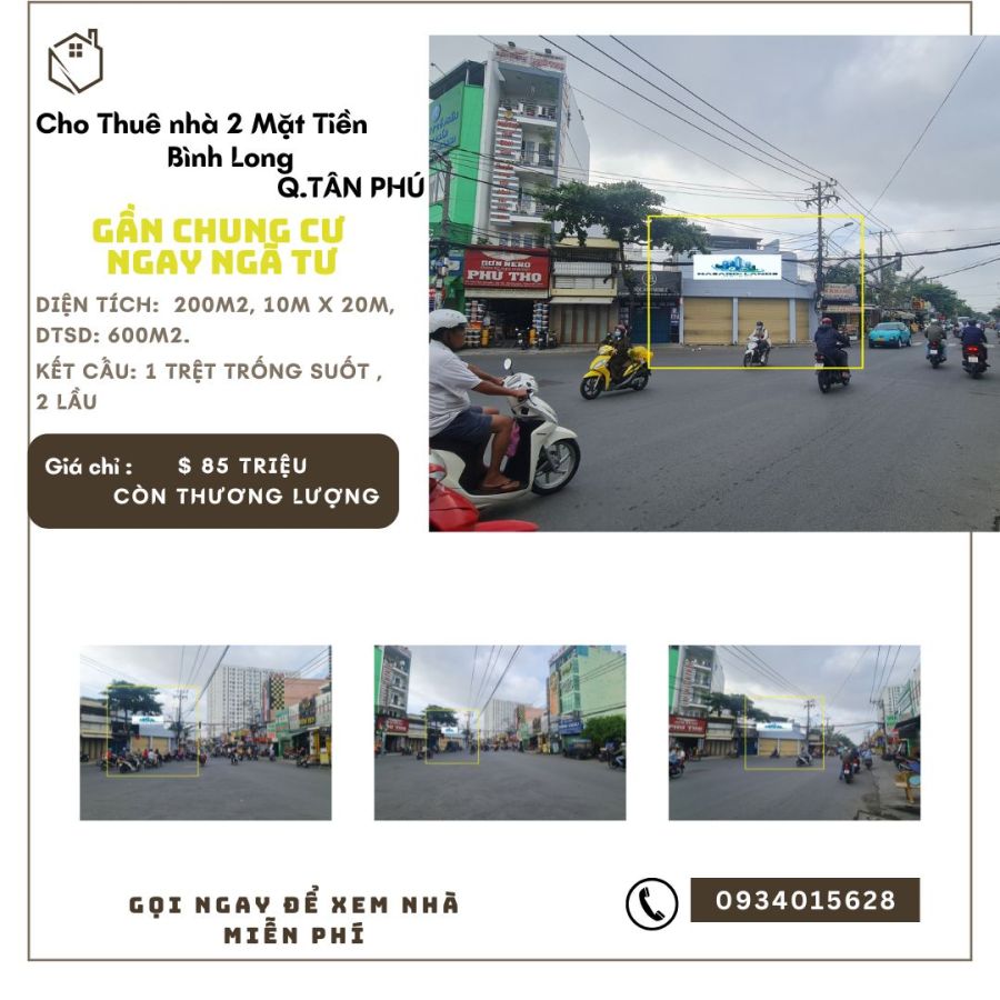 Cho thuê nhà 2 Mặt Tiền Bình Long 200m2, 2Lầu - NGAY NGÃ TƯ