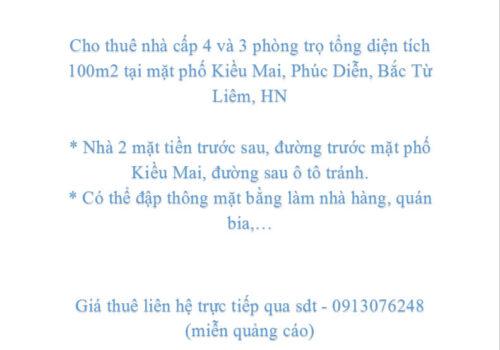 Cho thuê nhà mặt phố Kiều Mai, Phúc Diễn, Bắc Từ Liêm, HN