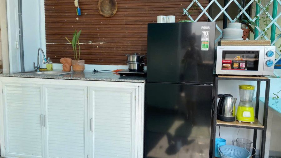 - Máy giặt riêng, thoáng mát, bếp riêng với đầy đủ đồ dung nấu ăn. - Máy lạnh - Tủ lạnh - Lò vi sóng - Tivi or máy chiếu - Nồi cơm điện - tủ bếp nấu ăn - nóng lạnh NLMT