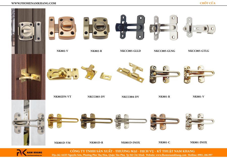 Chốt cửa được xem là phụ kiện nội thất đóng vai trò quan trọng không thể thiếu trong mỗi ngôi nhà, có tác dụng cố định cánh cửa, chỉ có người bên trong mới có thể mở được chốt vì thế đã đem đến sự riêng tư và an toàn cho khách hàng khi sử dụng sản phẩm.