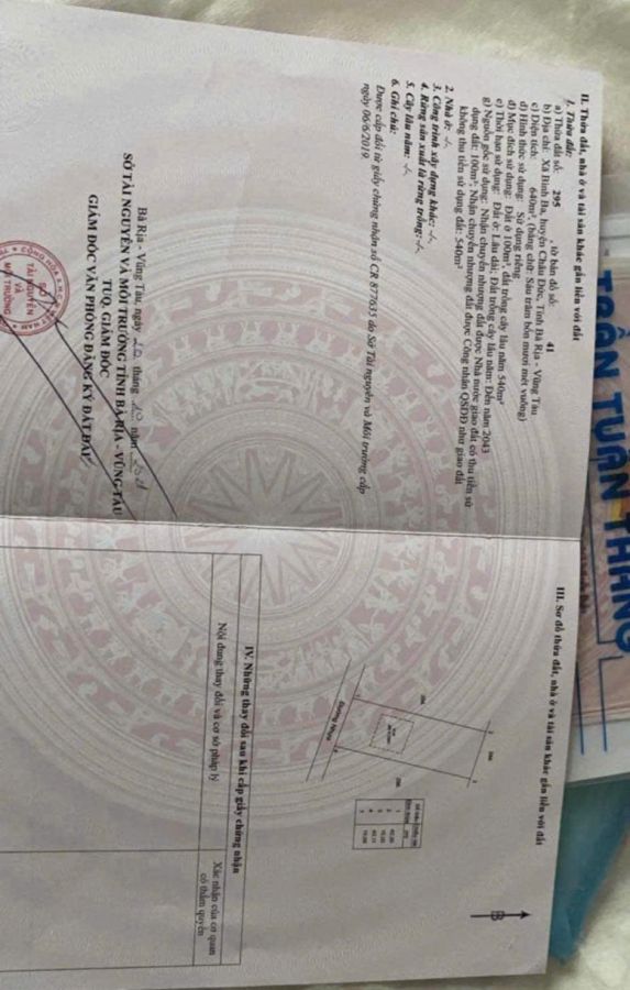 Chử cần bán 600mv khu dân cư bình ba châu đức brvt