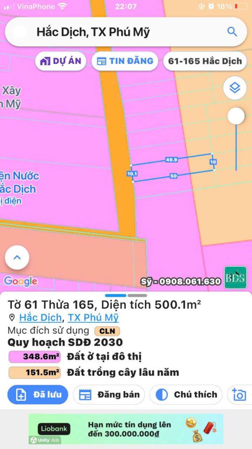 Chủ cần bán đất: - Diện tích 10*50. Thổ cư 120m.P hắc dịch tp phú mỹ - Vị trí: khu phố 4, phường hắc dịch, thị xã Phú Mỹ,tỉnh BRVT. - Cách đường Hắc Dịch- Tóc Tiên 142m.