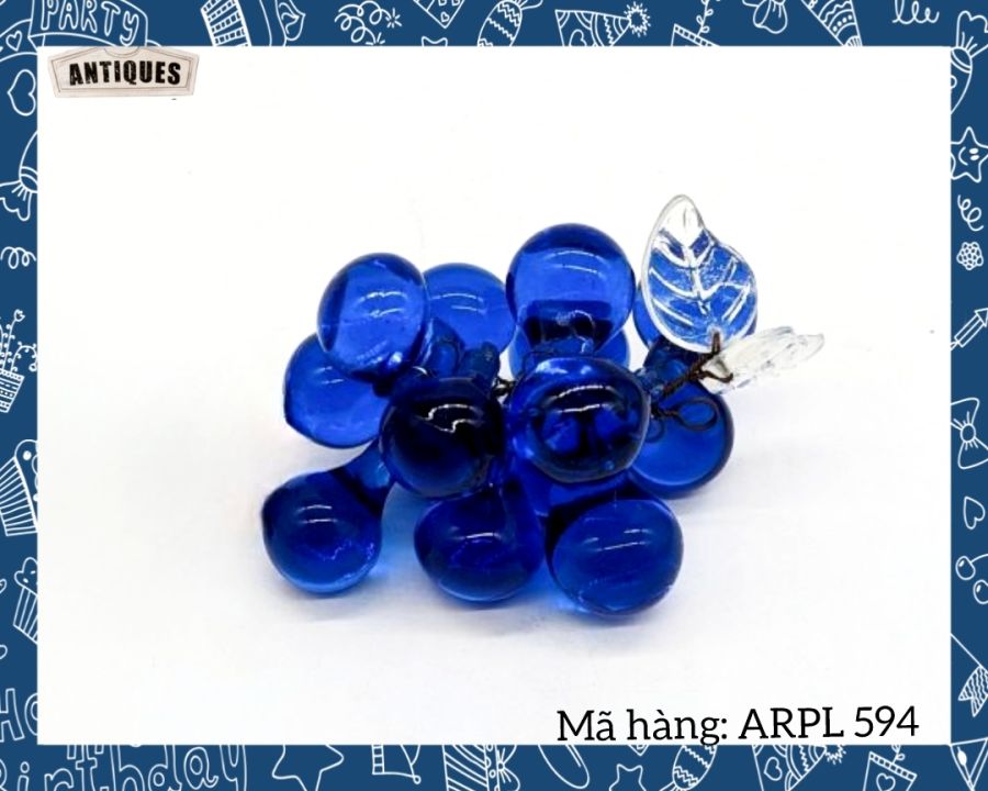 Chùm nho bằng thủy tinh màu xanh dương. Kích thước: cao 8.5cm, rộng, 10cm, dài 16cm.Trọng lượng: 800gr. Giá: 1.090.000₫