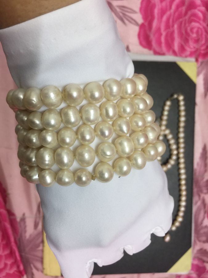 1/ Chuỗi ngọc trai nuôi thiên nhiên, sợi dài có thể đeo dây đôi hay gút lại thích hợp các quý cô áo dài, đầm , tôn nét sang trọng, dài 1m20cm, viên khoảng 8 -9 mm, trọng lượng dây 140 gram, hạt không đều nhau khi nhìn gần, giá 800 ngàn :