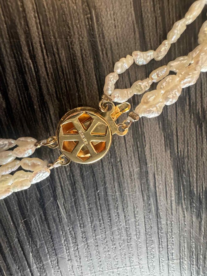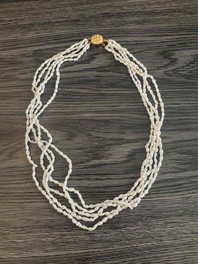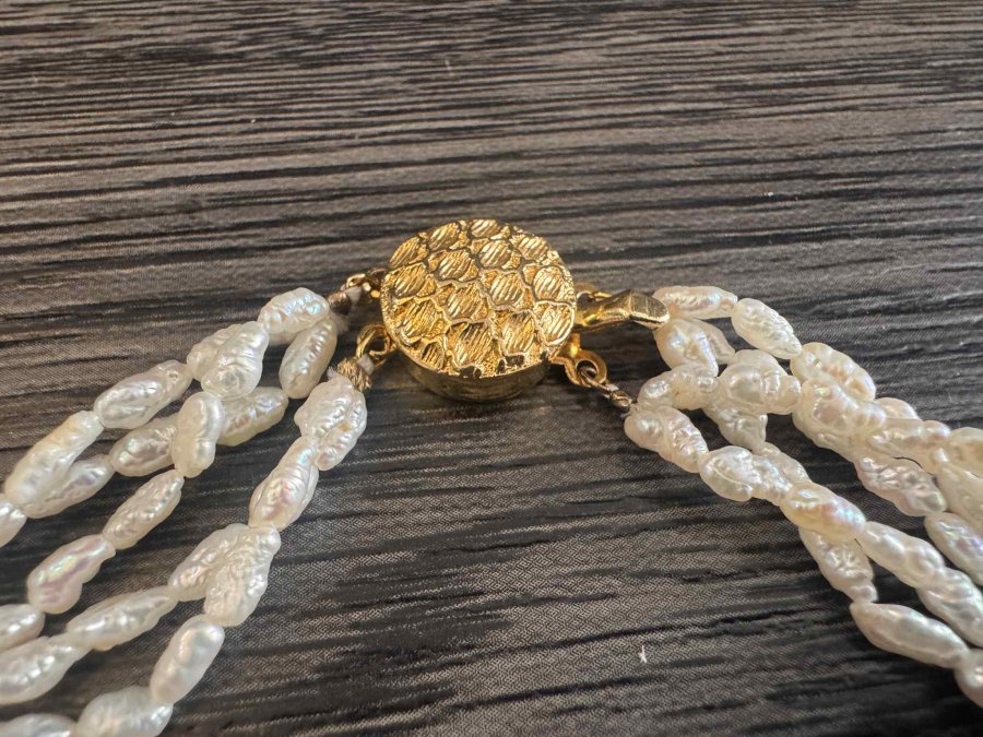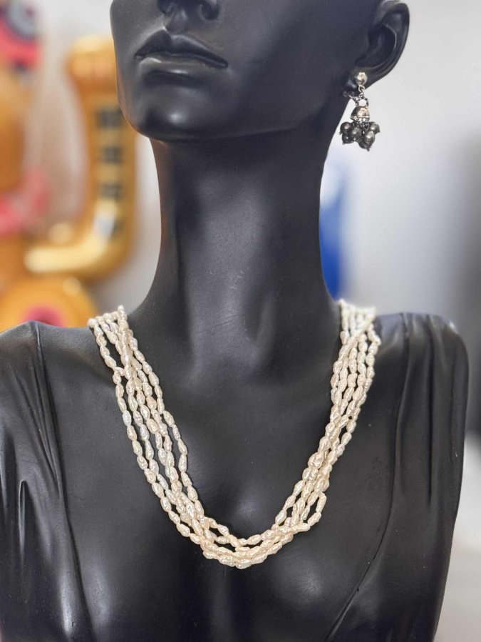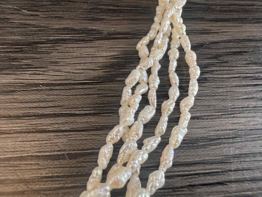 Chuỗi ngọc trai gạo Japan. Xà cừ dầy, rất đẹp. Dài 50cm. Khoá bạc mạ vàng. Em gl 1300k