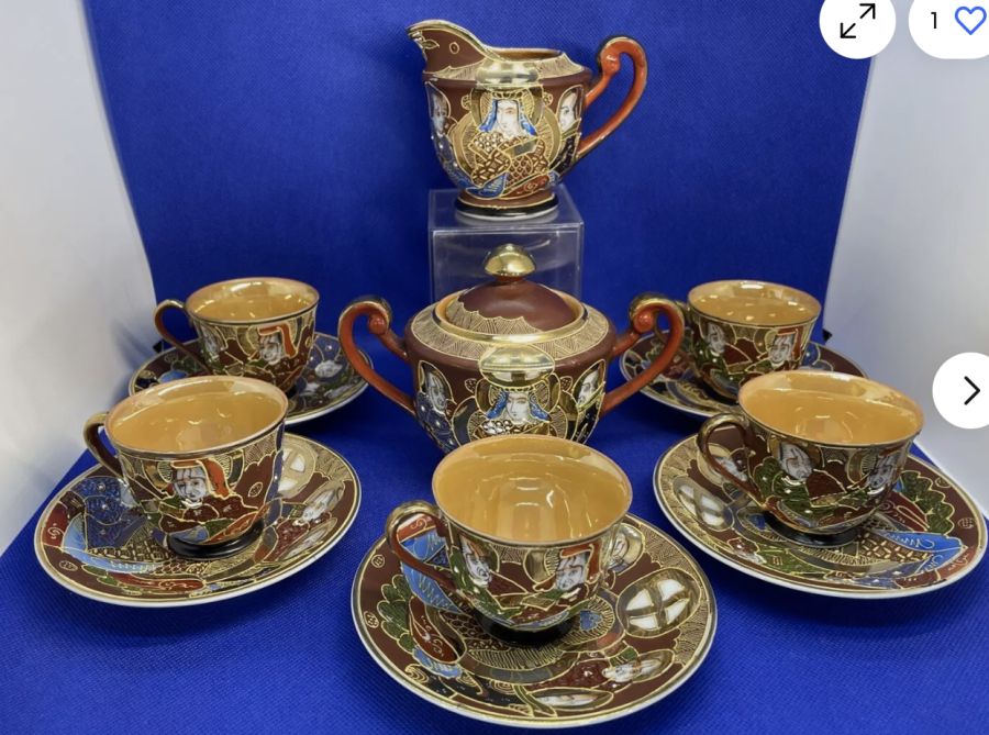Lucky China Satsuma Moriage Tea Set 13 Piece Japan Demitasse & Creamer Sugar