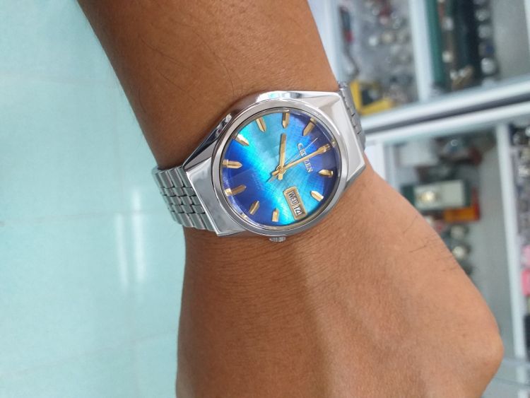 Citizen LeoPard 28.800 dao động, mặt xanh tia xoáy, size 37.