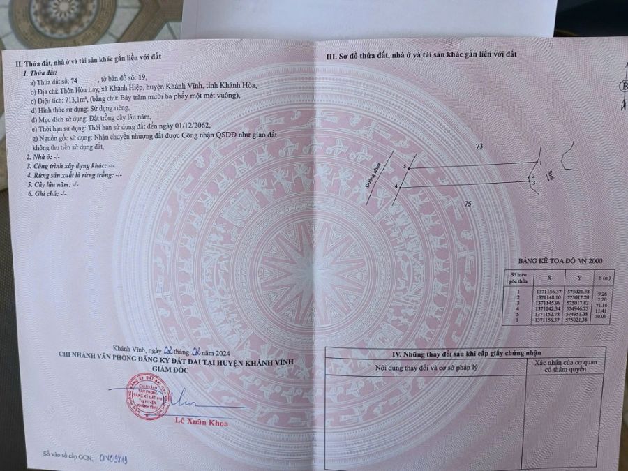 Địa chỉ tài sản: Xã Khánh Hiệp, Huyện Khánh Vĩnh, Khánh Hòa