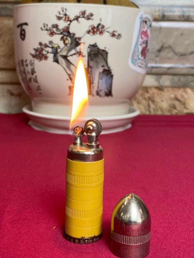 Cối xăng đá của Thụy sỹ Bullet Wick & petrol thập niên 1950sHình viên đạn Cao 7,5cm- đk đế: 2cmLinenew phôi phai theo thời gian vài chỗ