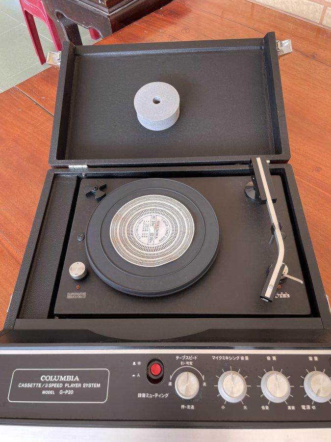 Bán 1 máy nhạc tự phát Columbia G-P20 còn rất đẹp, như mới. Máy phát được băng cassette và đĩa than. Cơ cấu mâm cần treo chống sốc, nhảy như mâm AR rất hay. Mâm có 3 tốc độ và chỉnh được tốc độ, tấm mass chỉnh tốc độ và chặn đĩa còn đủ. Tất cả còn nguyên như mới, seal băng keo nắp cassette còn nguyên, hoạt động hoàn hảo. Máy chơi cũng hay và trưng bày rất đẹp