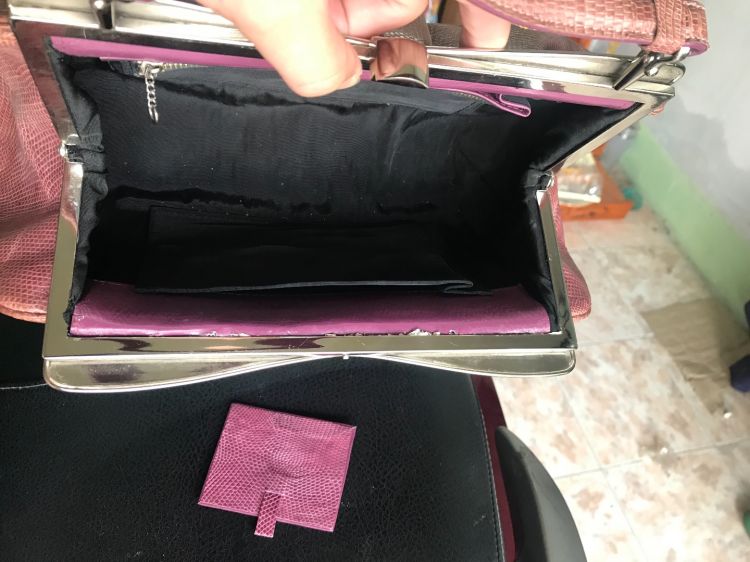 Kèm theo tuia là 1 caia kính cũng bằng da kỳ nhông luôn ạ . Màu rất độc các chi tiết kim loại sáng bóng luôn