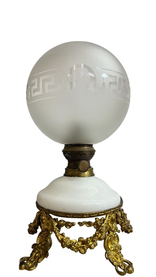 Cực độc đèn dầu Pháp cổ chân đồng mạ vàng to chà bá