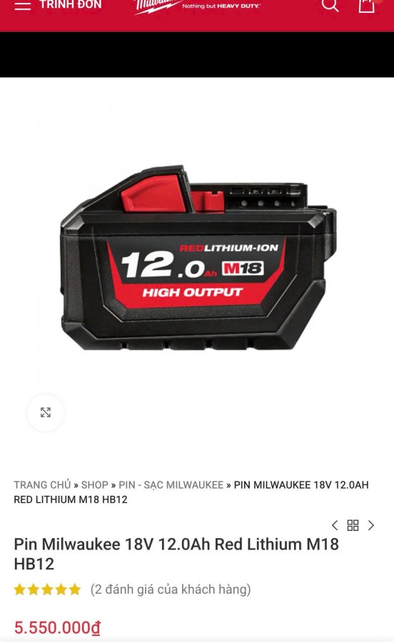 Pin dành cho các bác chơi máy công cụ hạng nặng như khoan bê tông, súng bu-long cỡ lớn....của Milwaukee.