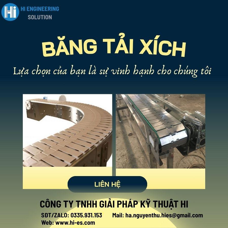• Băng tải xích – Tải trọng lớn, hoạt động ổn định trong các dây chuyền tự động, gia công kim loại, lắp ráp.