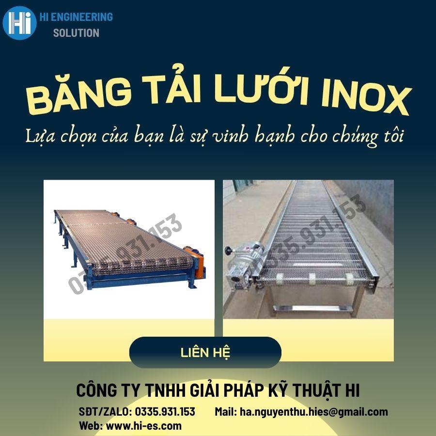 • Băng tải lưới inox – Chịu nhiệt, thoát nước tốt. Thường dùng trong rửa, sấy, hấp.