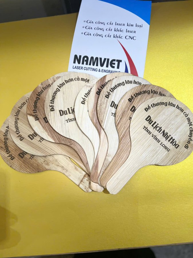 Laser Nam Việt chuyên cung cấp quạt mo cau tự nhiên và nhận khắc laser logo, tên, nội dung theo yêu cầu.