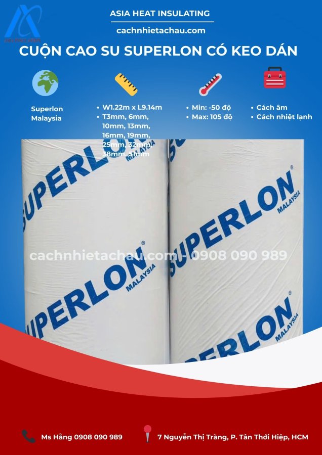 Cao su lưu hóa/ gen cách nhiệt Superlon Malaysia là sản phẩm cách nhiệt dạng ống đã định hình, dạng tấm phẳng chuẩn và dạng cuộn mà tất cả các sản phẩm này không có chất CFC, HCFC và O.D.P